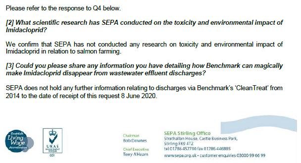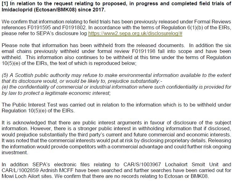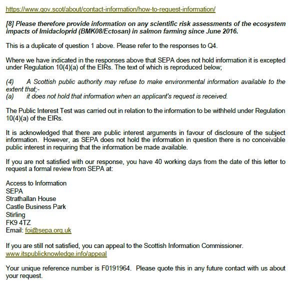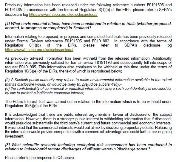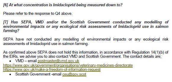 SEPA refuse to disclose information on the use of the toxic neonicotinoid insecticide Imidacloprid in salmon farming citing commercial confidentiality https://t.co/6dqW4x0iel @ScottishEPA @FOIScotland If disclosed it would prejudice economic interests @WeAreBenchmark @FerdOwner pic.twitter.com/m88qS2Tv2A
