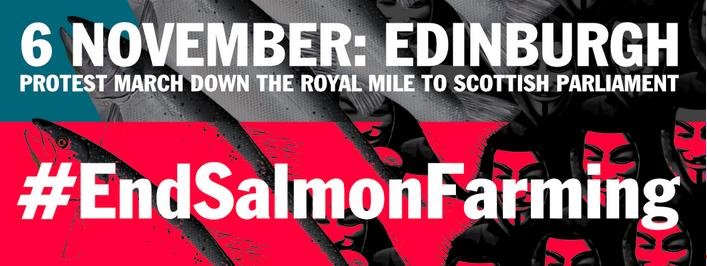 A ‘digivan’ (like a mobile huge TV) screening gruesome images of factory pharmed salmon will migrate from London on Halloween (31 October 2023) via Bristol, Cardiff, Hereford, Stratford-upon-Avon, Birmingham, Liverpool, Leeds, Hull, York, Berwick-upon-Tweed, Perth, Inverness, Fort William, Invereray and Glasgow to Edinburgh on November 6th for a protest march down the Royal Mile to the Scottish Parliament.