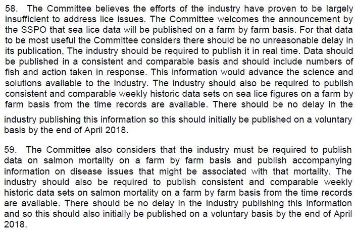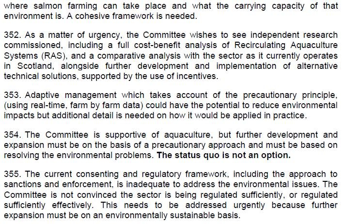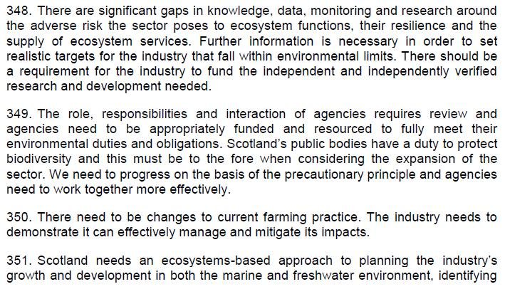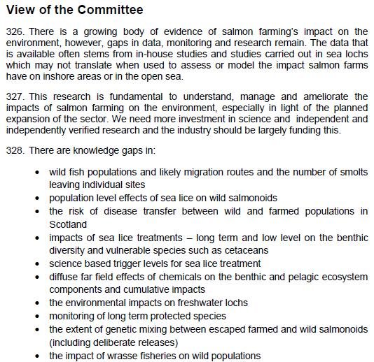 Here's some of the key points from the Scottish Parliament's new report on the environmental impacts of salmon farming published today (5 March 2018):