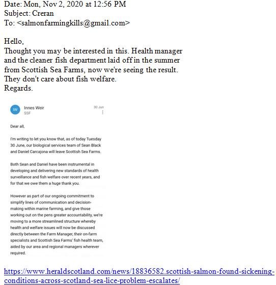 - Leaked Email: Staff Cuts at Scottish Sea Farms Compromise Fish Welfare