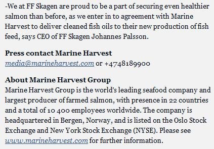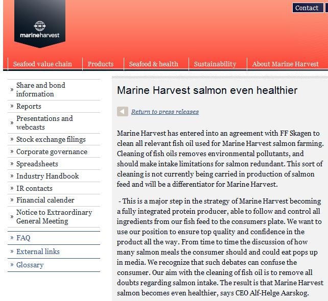 Marine Harvest, the world's largest salmon farming company, has finally announced plans to decontaminate the fish oil which is used to feed its farmed salmon – read their press release (3 April) online here