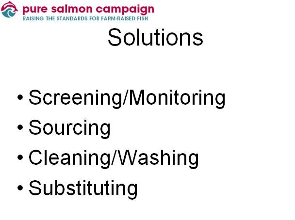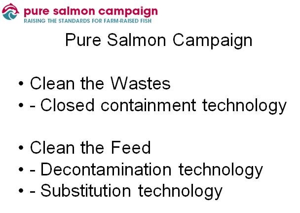 Back in 2007, the Pure Salmon Campaign urged the salmon farming industry to decontaminate the fish feed fed to their farmed salmon. Read a presentation – You Are What You Eat – by the Pure Salmon Campaign at the 2007 Seafood Summit:
