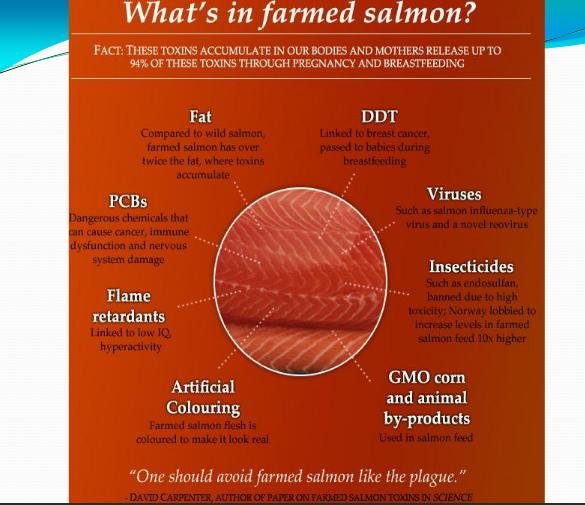 Read more details via "Farmed & Dangerous Salmon – the most contaminated food on the supermarket shelf" (8 March 2014)