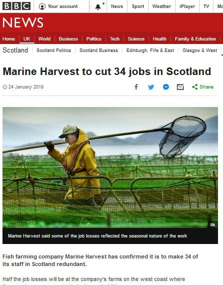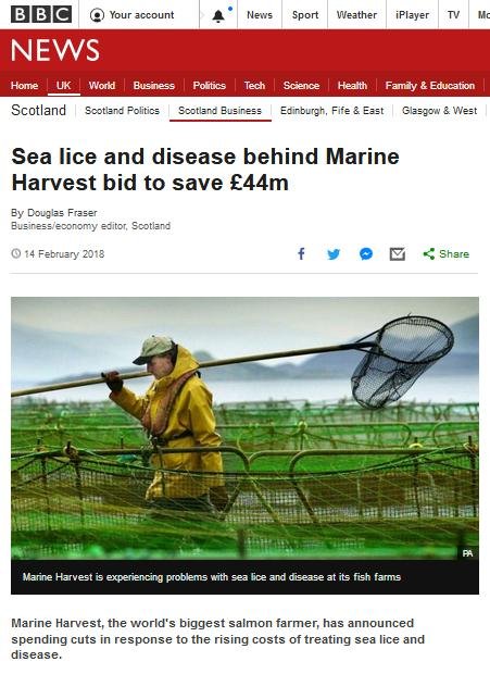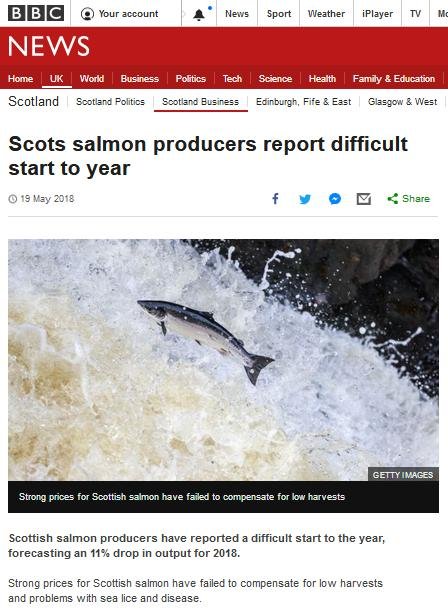 BBC News reported (19 May 2018) further trouble ahead for Scotland's disease-ridden salmon farming industry: