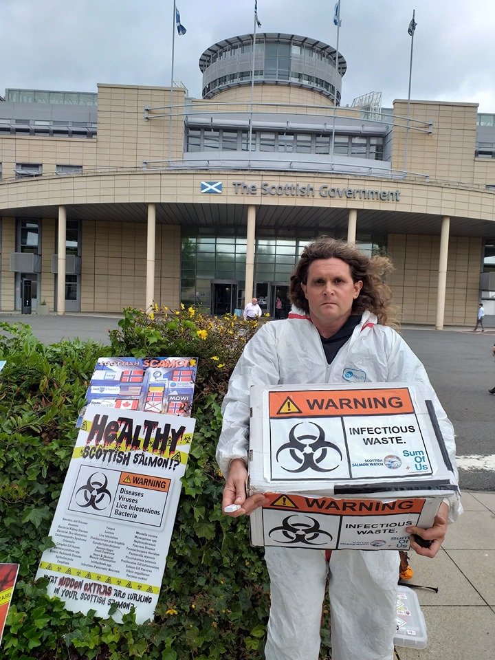 It was a heavy lift in windy weather but Scottish Salmon Watch successfully delivered a 43,000+ petition on behalf of SumOfUs to the Scottish Government in Edinburgh. The petition calls on Marine Scotland to "conduct immediate, unannounced on-the-spot inspections of all Scottish salmon farms to assess fish welfare".