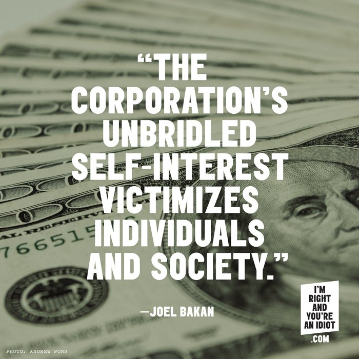 As Professor Joel Bakan, author of The Corporation, puts it: