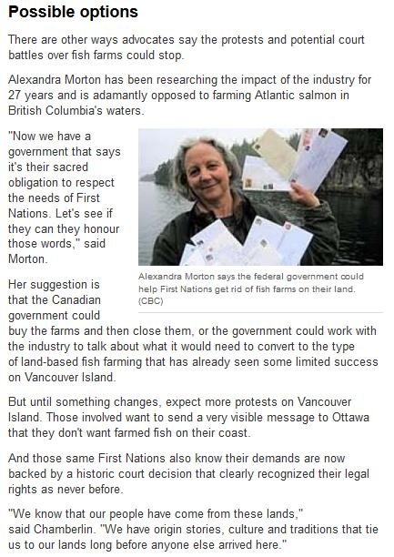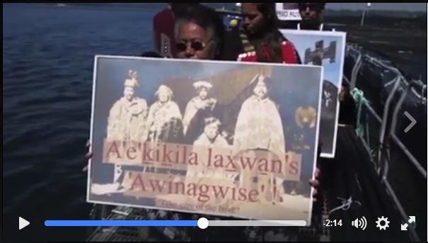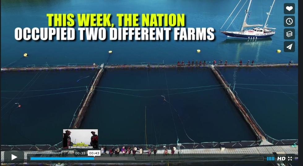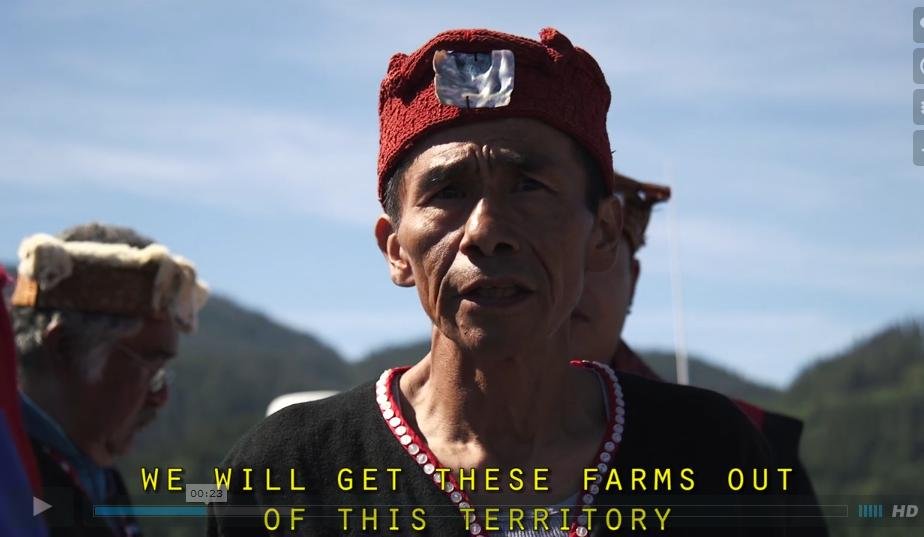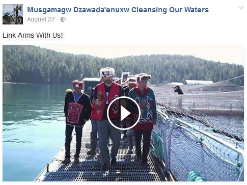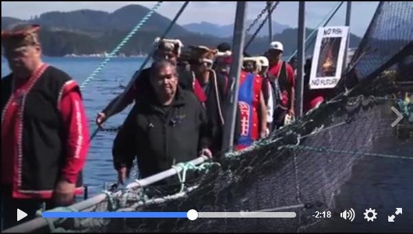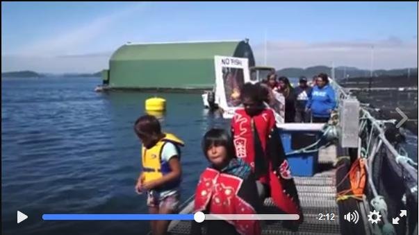 Video also available online via Musgamagw Dzawada'enuwx Occupy Marine Harvest Fish Farm and more footage via "Fish Farm Resistance Heats Up in BC"
