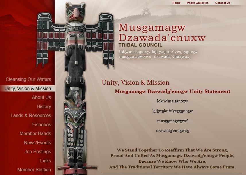 The mission and vision of the Musgamagw Dzawada’enuxw people is one of unity.