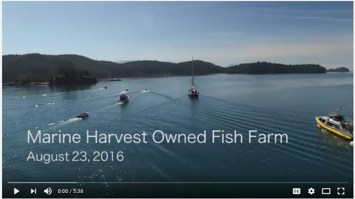 Watch video footage of the "civil" boarding of Marine Harvest's salmon farm at Midsummer Island online here
