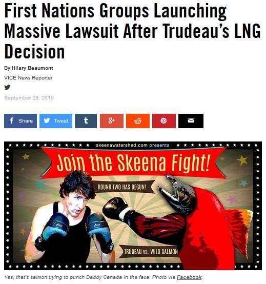 This isn't the only legal battle simmering in the pristine waters of British Columbia. Last month the Canadian Government approved the Petronas liquefied natural gas (LNG) project in northern British Columbia prompting "a slew of legal challenges". Donnie Wesley, the highest ranking hereditary chief of Gitwilgyoots tribe (which has jurisdiction over Lelu Island where the LNG terminal would be built) called the Canadian Prime Minister "an outright liar" and said the project's approval was "a slap in the face".