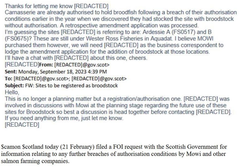 PR Mowi breach of authorisation at Carnasserie 21 February 2024 #2