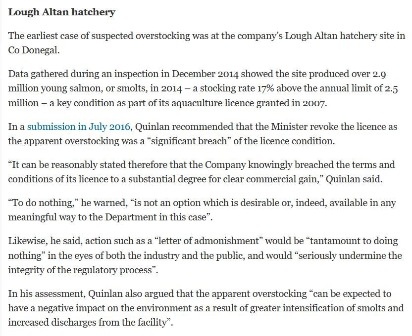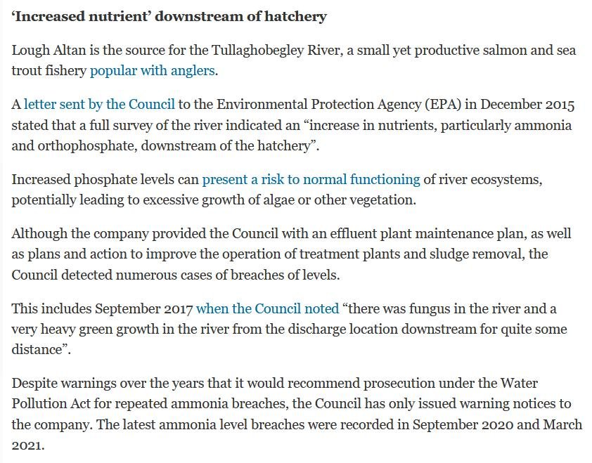 Mowi's Lough Altan freshwater salmon farm does not have the best reputation.  Salmon Business reported in April 2019: