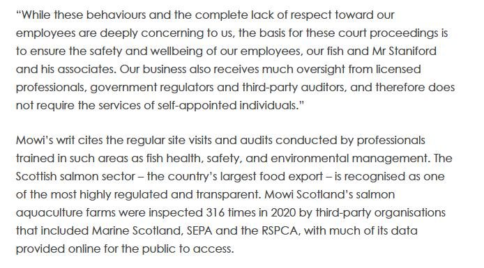 Mowi: "the basis for these court proceedings is to ensure the safety and wellbeing of our employees, our fish & Mr Staniford" @MowiScotlandLtd https://t.co/vEEgjixVvn
