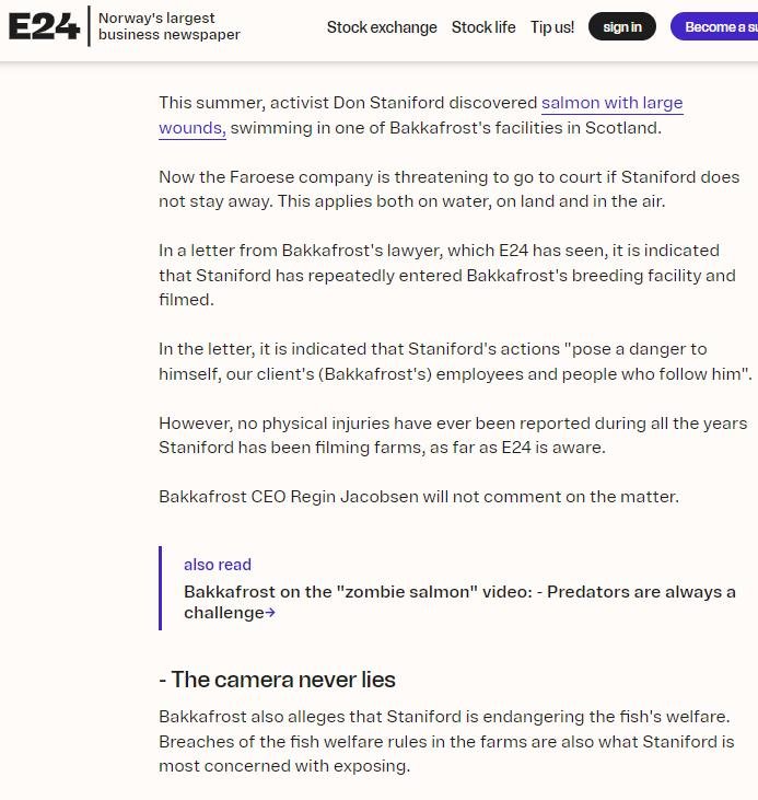 Norway’s E24 reporting on ‘Zombie’ Bakkafrost’s SLAPP!