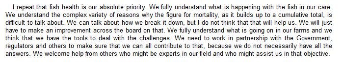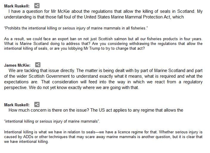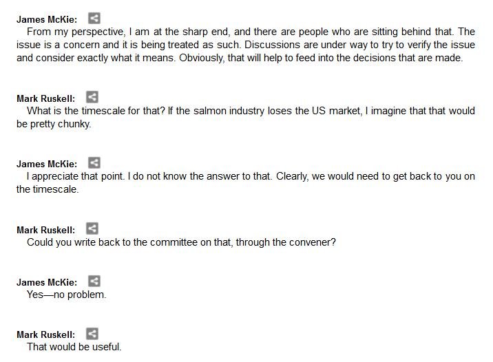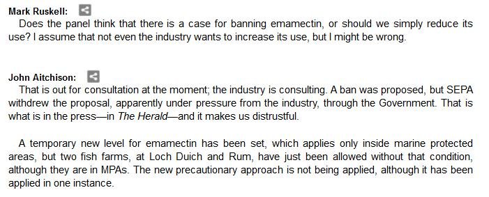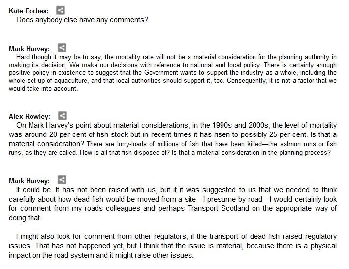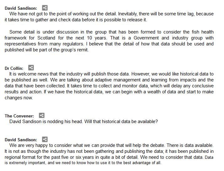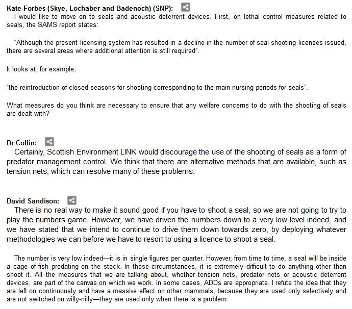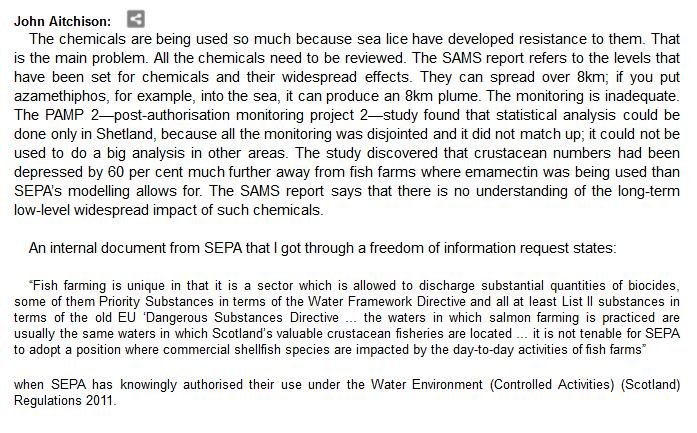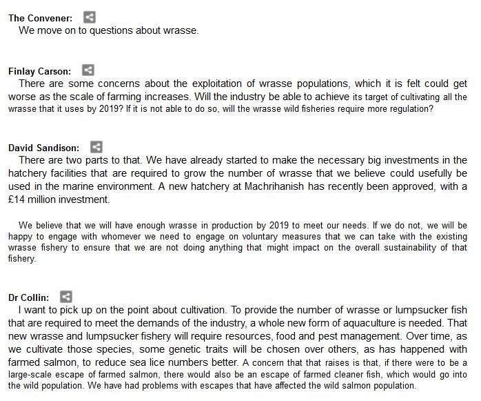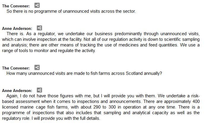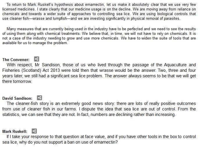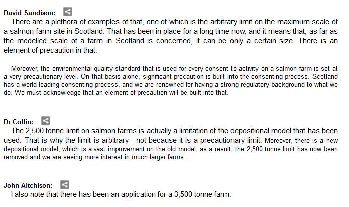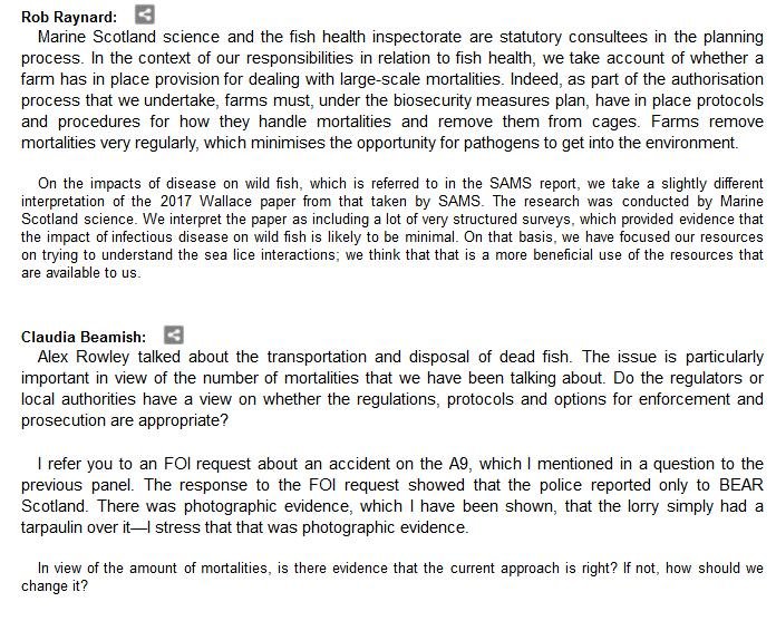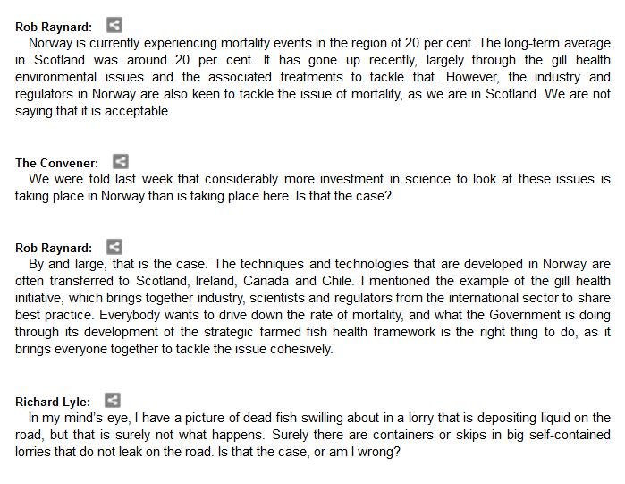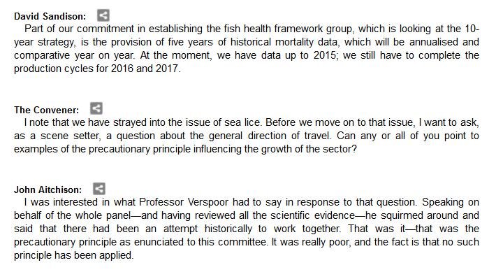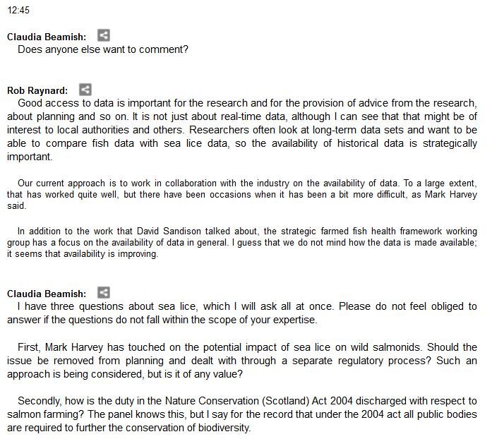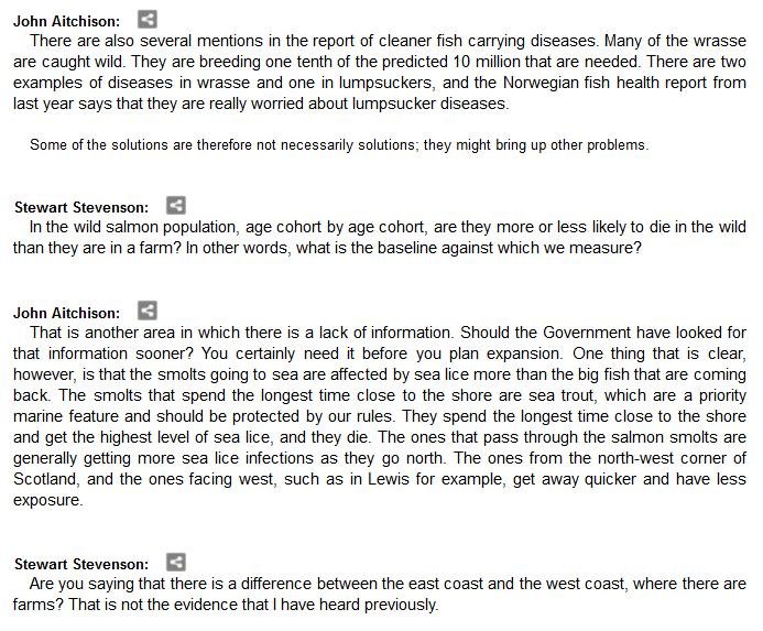 The official transcript of the Scottish Parliament's inquiry into the environmental impacts of salmon farming on 6 February is now online here (and as a PDF online here)