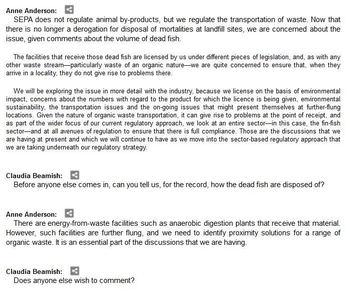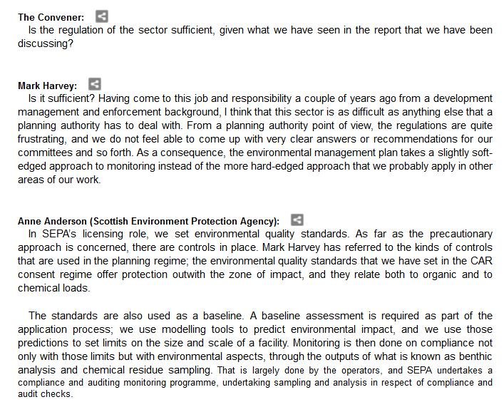 Transcript of Scottish Parliament inquiry into the environmental impacts of salmon farming
