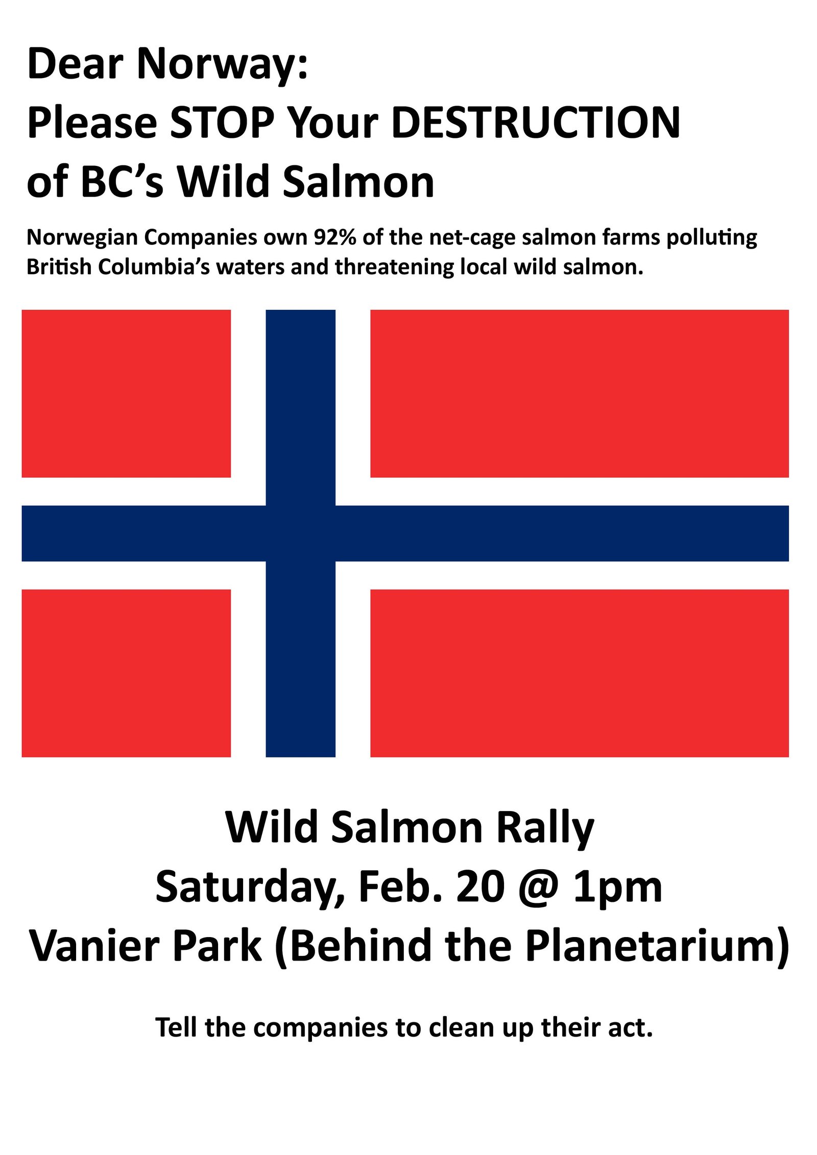 A rally organised by the Wild Salmon Circle was also organised in Vancouver in February 2010 – introduced by Rick Glumac who is now an MLA in the NDP's Government in British Columbia: