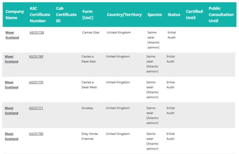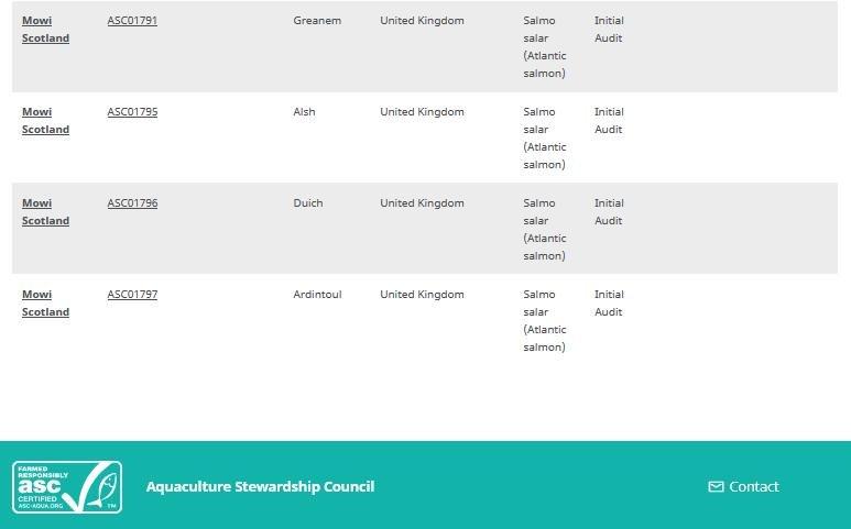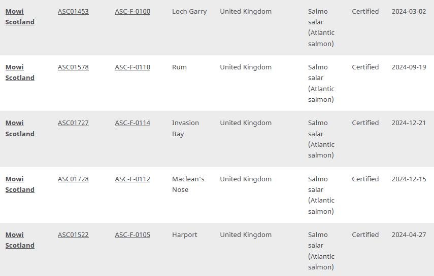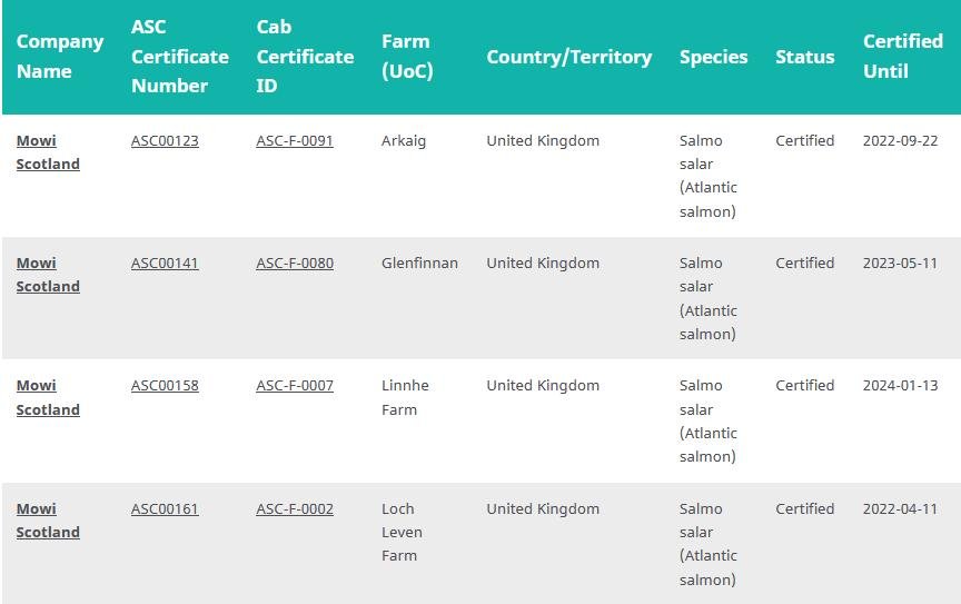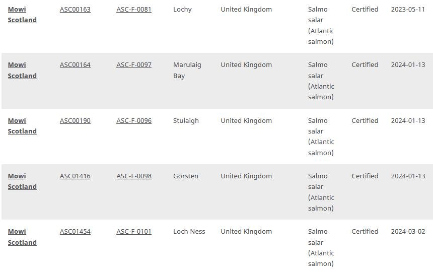 And includes the 14 Mowi salmon farms already certified by the ASC: