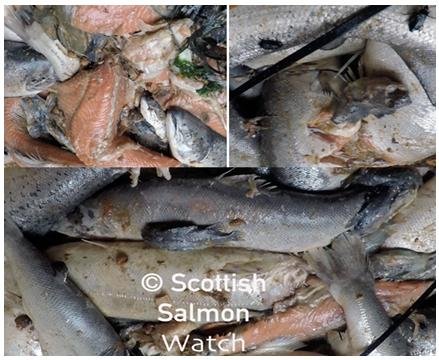 Here's photo stills fr0m video footage of dead farmed salmon and cleaner fish: