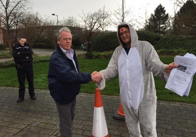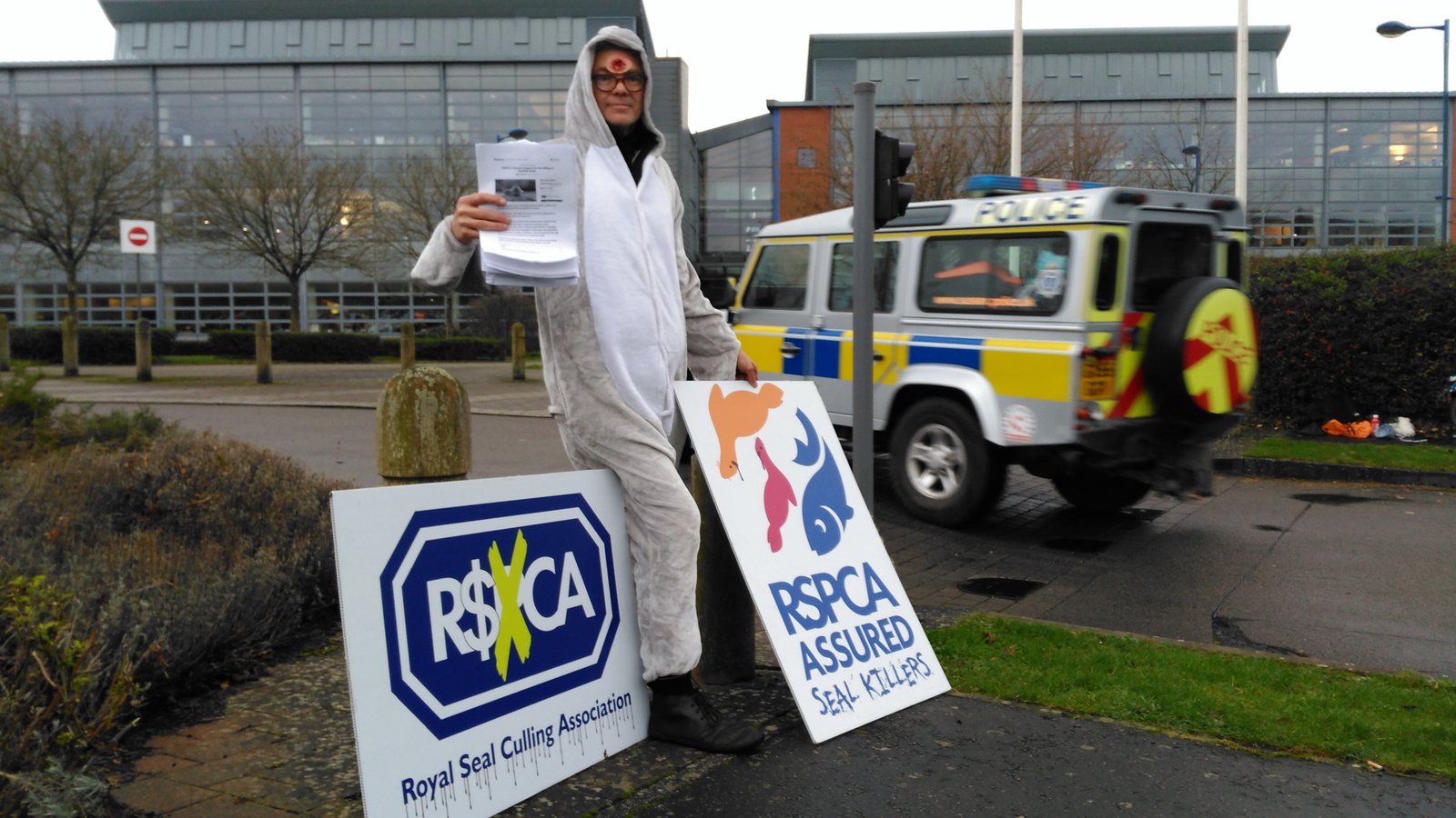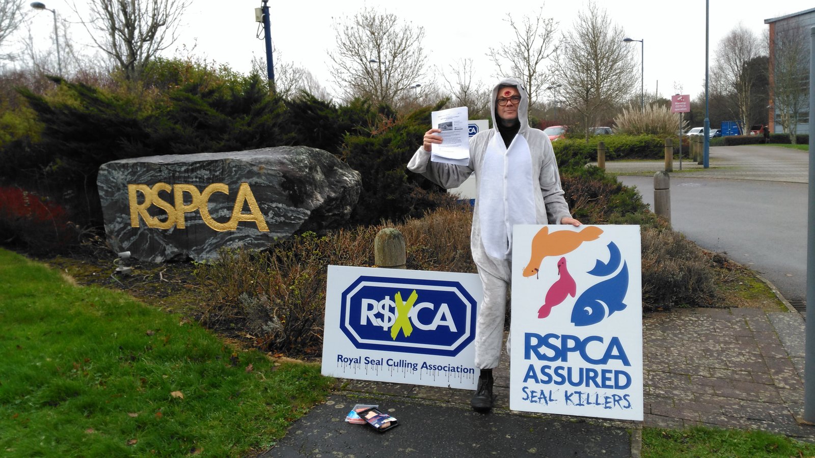 Photos: RSPCA Assured Seal Killers! December 10, 2015 Here's photos from our visit to the RSPCA head office in Horsham, West Sussex earlier today (10 December) – please sign the petition – "RSPCA: End your support for the killing of Scottish Seals" – we delivered: Read more via: Video Reports from London Photos: Her Majesty the Queen visit Photos: Supermarket protest in London! "Anti-salmon farm campaigners petition Queen over RSPCA’s seal-shooting sanction" Petition to the RSPCA: End your support for the killing of Scottish seals! Press Release: "RSPCA Savaged Over Seal Killing in Scotland" Letter to Her Majesty the Queen Supermarkets: Stop Killing Seals at Salmon Farms! "Salmon farmers are shooting seals instead of installing non-lethal deterrents, campaigners say"