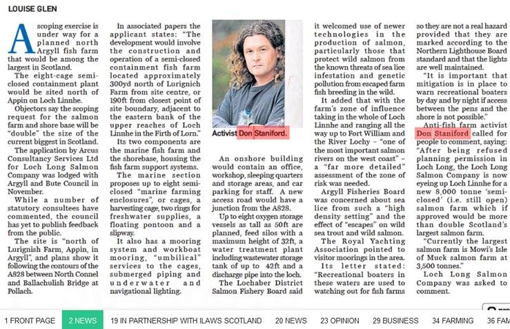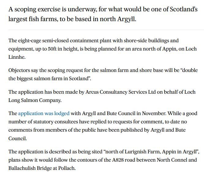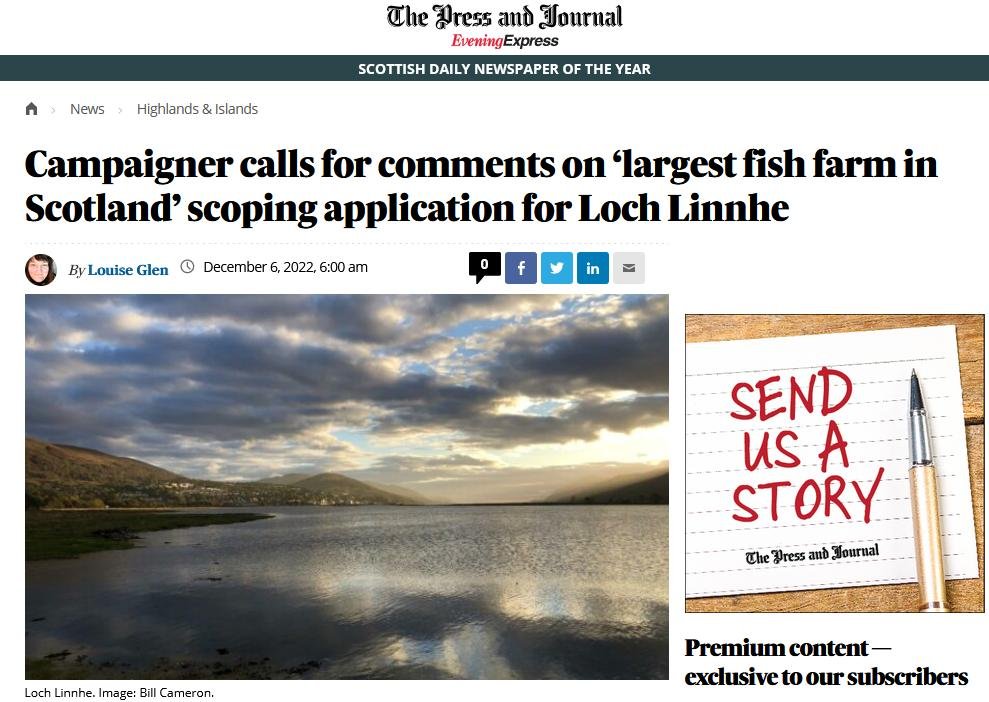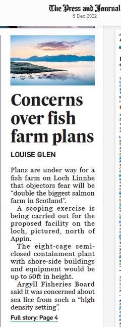 P&J: “Campaigner calls for comments on ‘largest fish farm in Scotland’ scoping application for Loch Linnhe”