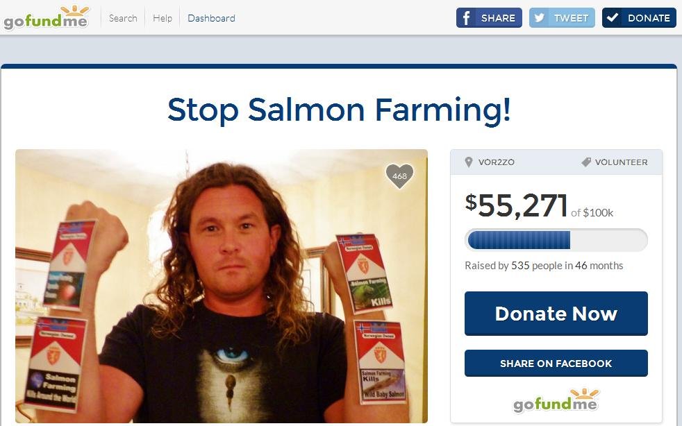Please support my campaign – donate now! November 9, 2015 Please support my ongoing campaign against salmon farming – donate now via Go Fund Me!