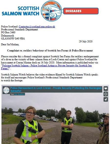 Here's video footage of events in Loch Creran on 16 July 2020 captured by Scottish Salmon Watch (who today filed a formal complaint against Police Scotland for harassment and against Scottish Sea Farms for reckless behaviour and breach of safety):