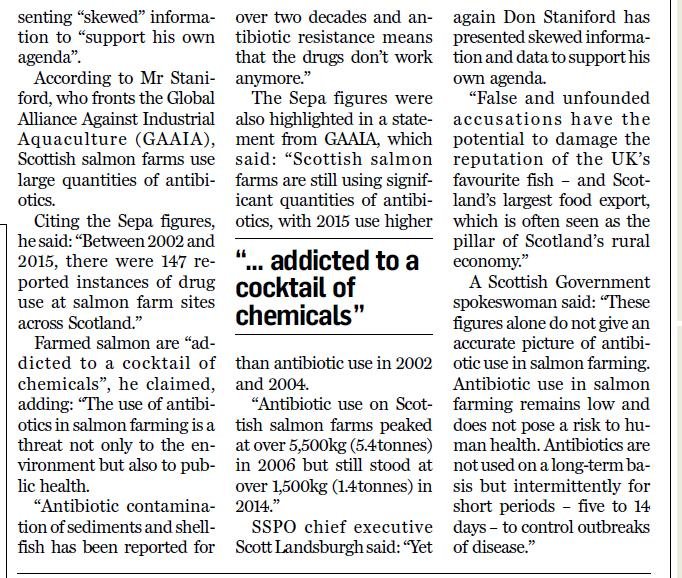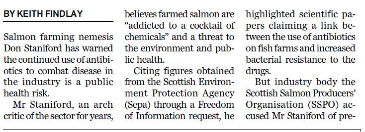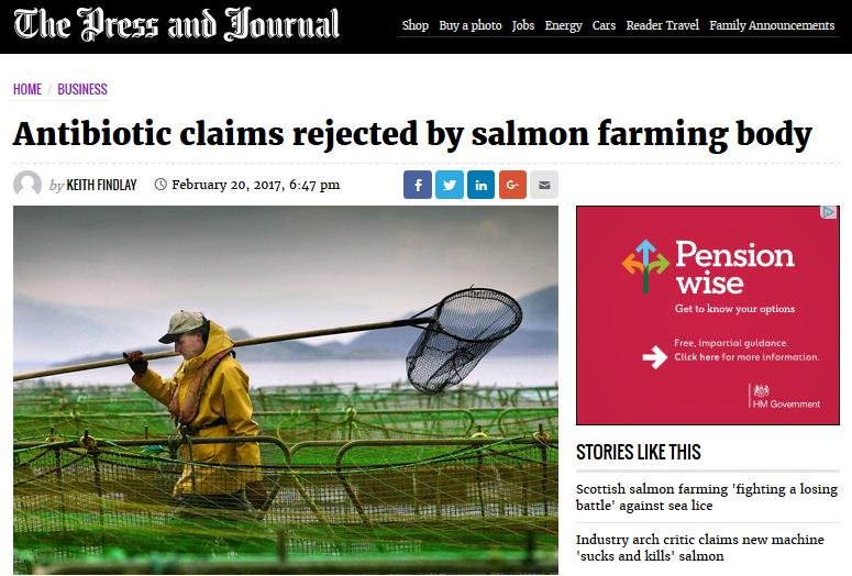 Press & Journal: “Fish ‘hooked on chemicals'” February 20, 2017 The Press & Journal reported (20 February 2017): Download article as a PDF online here The online version reported: Read more via: Scottish salmon farming 'fighting a losing battle' against sea lice Industry arch critic claims new machine 'sucks and kills' salmon