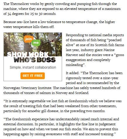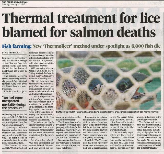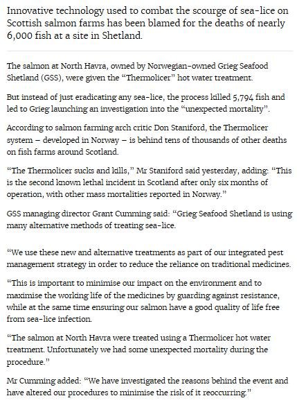 - Sunday Herald: "Oops: fish farm firm kills 175,000 of its salmon by accident"