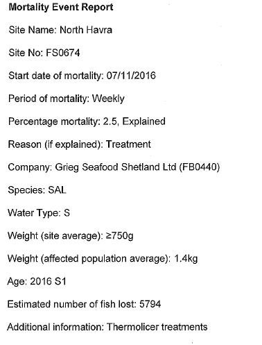 Here's the Mortality Event Report obtained via FOI from the Scottish Government: