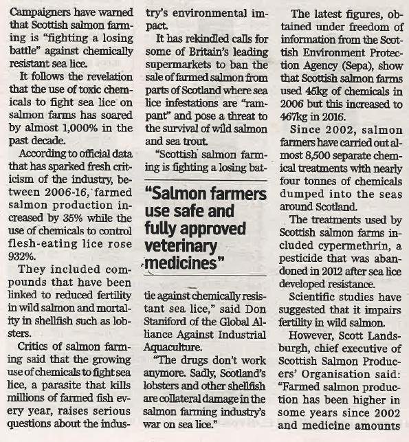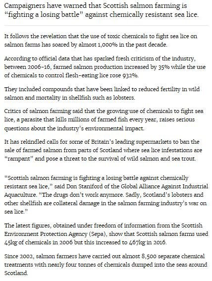- The Times: "Toxic war on salmon lice soars 1,000%"
