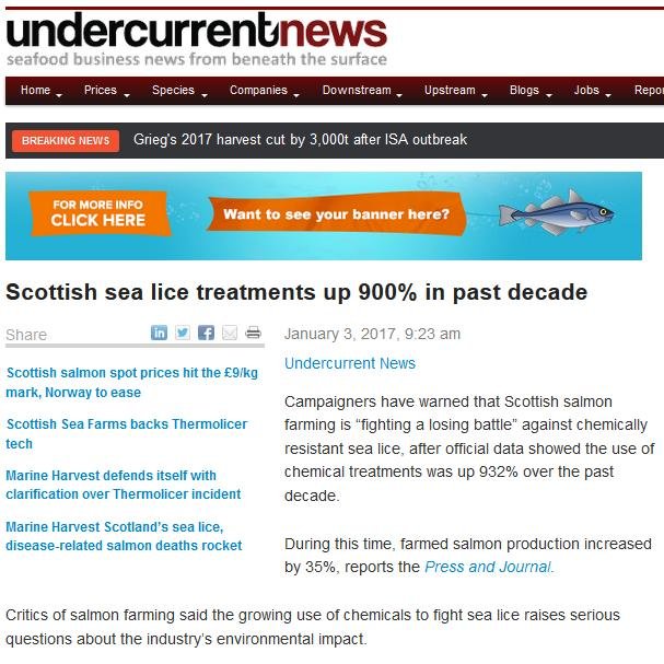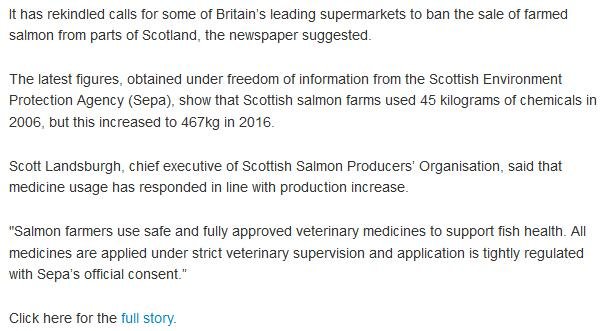 - The Sunday Times: "Salmon industry toxins soar by 1000 per cent"