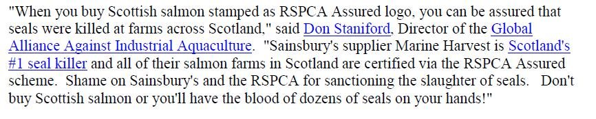 "Staniford calls on RSPCA to drop Marine Harvest, Scottish Sea Farms, SSC"