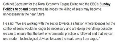 "The position which we all wish to see is every method used to scare seals away from cages and as the Minister responsible I am very pleased that technology now including the use of sonar devices means that it is now proving possible to do this in increasing occasions."