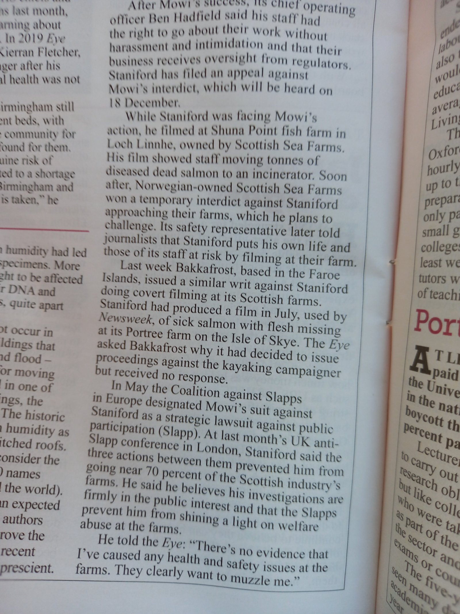 Private Eye on Mowi's SLAPP in the face of public access/interest!