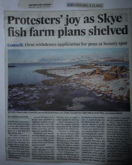 An Editorial also addressed "the victory for people power".  "Locals had every right to fight to protect picturesque Loch Slapin – whether it was welcome that activists from Norway and Canada jumped aboard the wider campaign against what is, after all, an extremely important industry is a moot point."