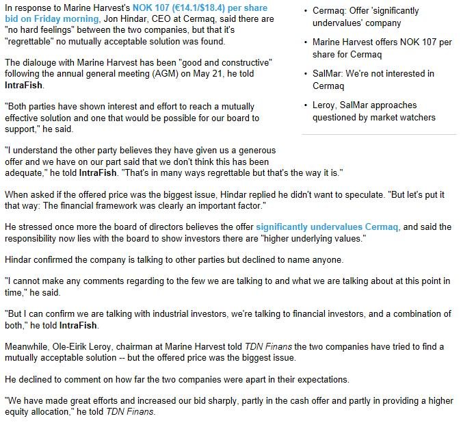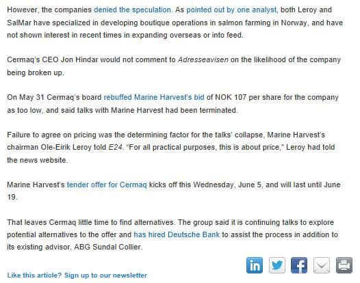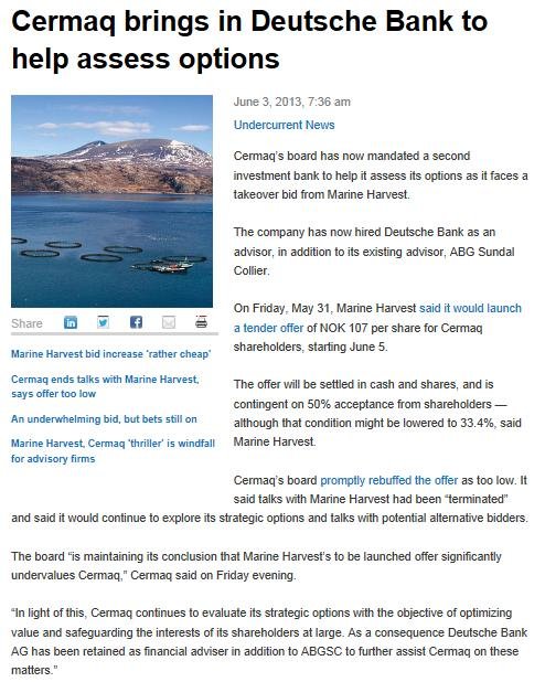 - Round 8: Cermaq Floored by Marine Harvest at AGM