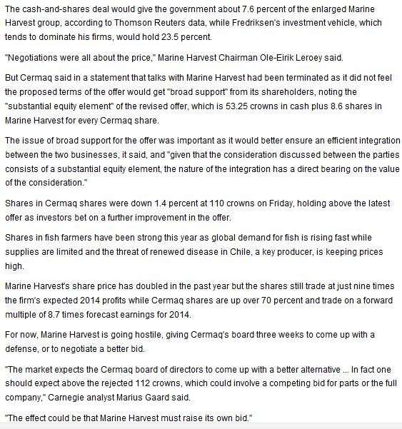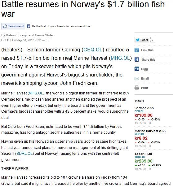- Salmon Giant Eats Salmon Giant – Marine Harvest takeover of Cermaq!