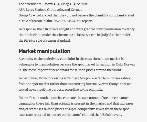 Salmon Cartel Case Moves Forward Against Top Norwegian Companies @business @BLaw @Mike_S_Leonard @LeroySeafood @mowisalmon_us @ScotlandMowi @GriegShetland @Cermaq https://t.co/ziQTAf9orA#Salmafia #Salmoney #Salmonopoly