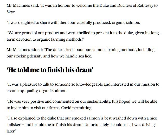 Sadly, HRH the Prince of Wales's notion of 'sustainability' is Mowi's disease-ridden salmon farms!