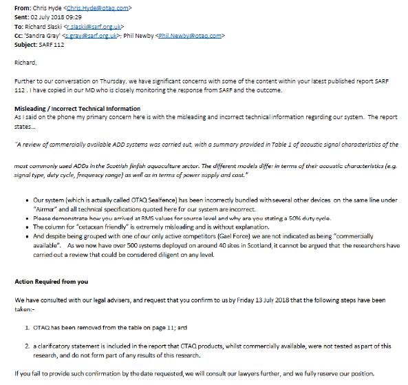 A report 'published' back in 2018 by the Scottish Aquaculture Research Forum (SARF) into the "Influences of lower-frequency Acoustic Deterrent Devices (ADDs) on cetaceans in Scottish coastal waters" has mysteriously vanished.