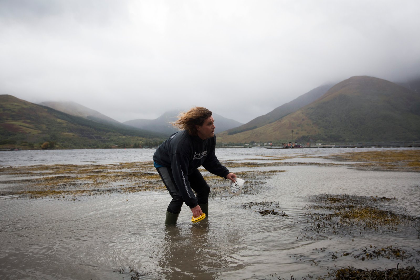 I'm happy to head out into the field – whether it is to take samples of salmon farming eflluents: