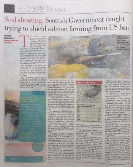 Sunday Herald: "Revealed: Scottish Government bid to exempt salmon farming from US seal-killing ban"