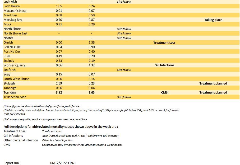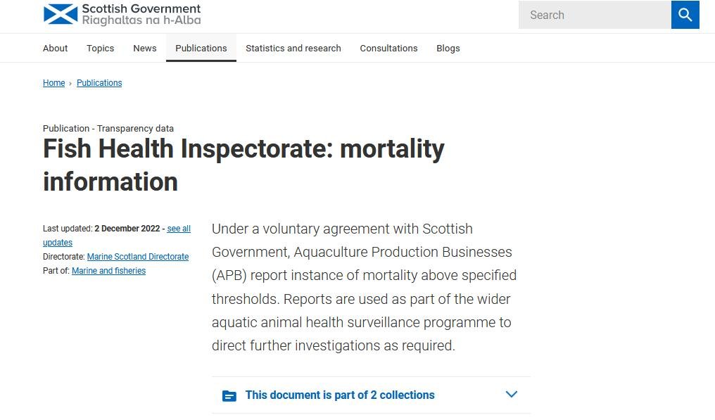 And the Scottish Government published mortality data for salmon farms up to the end of October 2022 on 1 December 2022:
