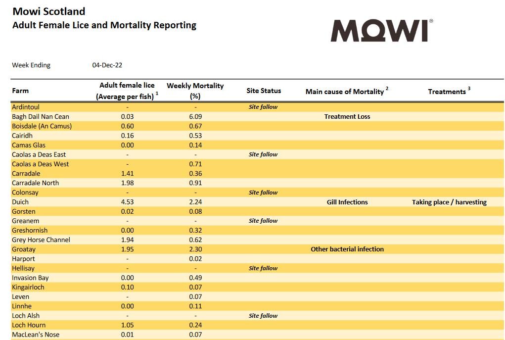 And Scotland's largest salmon pharmer – Norweigan behemoth Mowi – have already published lice and mortality data for Week 48 in 2022 (i.e. early December):
