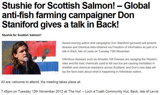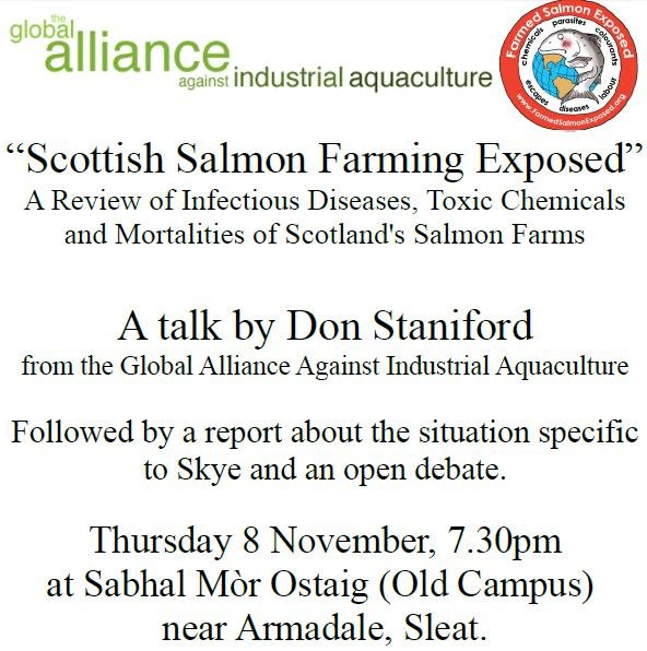GAAIA and Wild Salmon First are heading tomorrow to the Isle of Skye on the West coast of Scotland for a two-day tour (7-9 November) of disease-ridden feedlots operated by Marine Harvest and the Scottish Salmon Company (read our Itinerary online here).