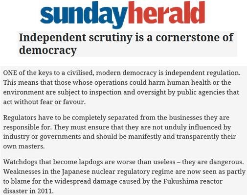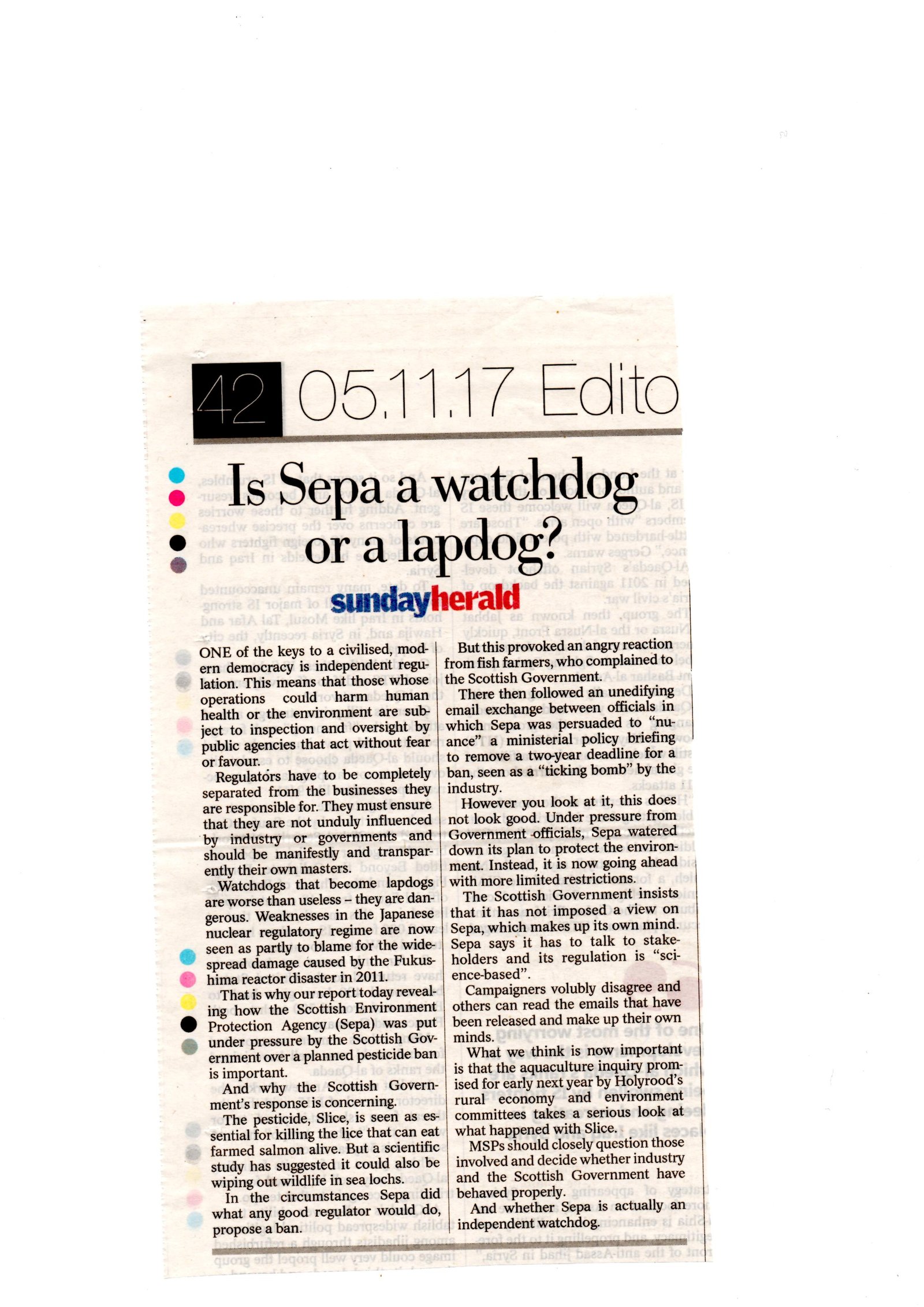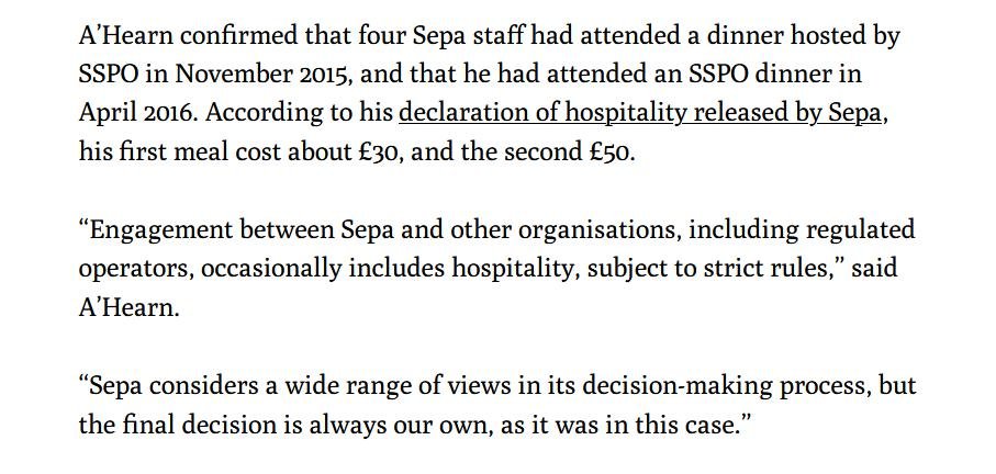 An Editorial in The Sunday Herald in November 2017 raised serious questions over the "impartiality" of SEPA: