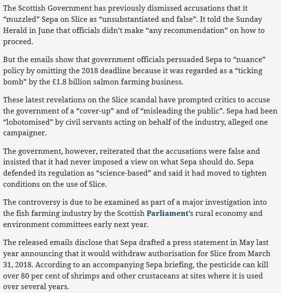 Read more via: Slicegate: Anatomy & Chronology of an Environmental Lobotomy – How the Scottish Environmental Protection Agency was Sliced to death by the Scottish Government and salmon farming lobby