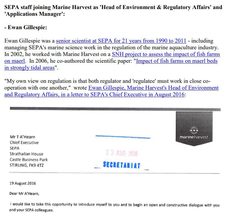 Emails obtained via Freedom of Information reveal how the Salmafia – just six foreign owned/controlled companies account for 99% of 'Scottish' salmon farming production – lobbied Terry A'Hearn soon after he joined SEPA in 2015: