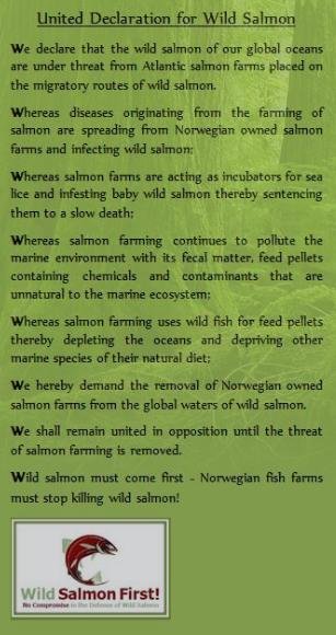 of stopping salmon feedlots from killing off the King of Fish. Hear the call of the wild salmon!”